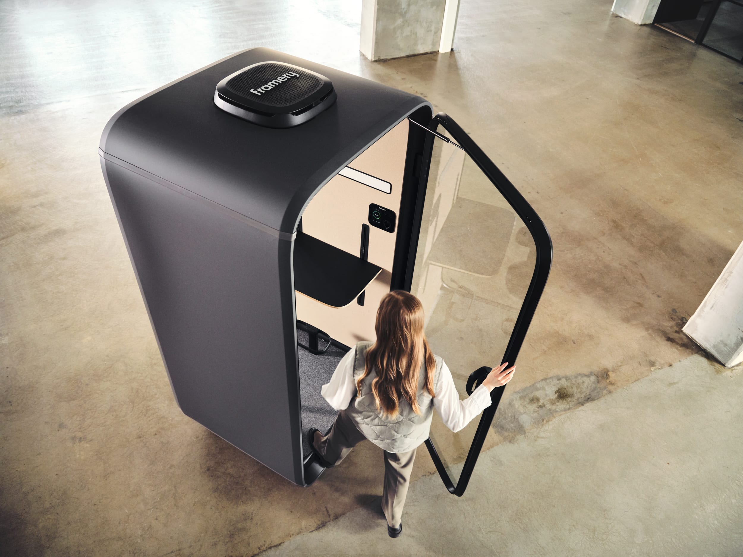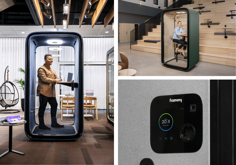 Workdays that flow with ease – Framery One has been purposefully designed to make your workdays flow easier. Automatically reserve a vacant pod by stepping inside, or book it in advance or on-the-fly from the Framery app. Extend your reservation directly from the pod’s touchscreen, or adjust your booking through the app.
