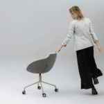 TULA armchairs come in a broad range of upholstery options which allows you to choose from a variety of colour combinations and to mix and match different fabrics, genuine leather or leather look options. Contrasting colours will emphasise the shapes and distinctive character of the product. The bases come in 4 different options that you can choose from depending on your functional requirements and the interior design of your office. A swivel pyramid-shaped base on castors is recommended if you are looking for modern design and mobility. A polished aluminium five-star base with castors is ideal for people who appreciate the classics and prefer mobility. The TULA armchair with a polished aluminium four-star base is perfect for classic style lovers, and a four-leg lacquered natural solid ash wood base is the best choice for those who want to create a homely feel in their office space.