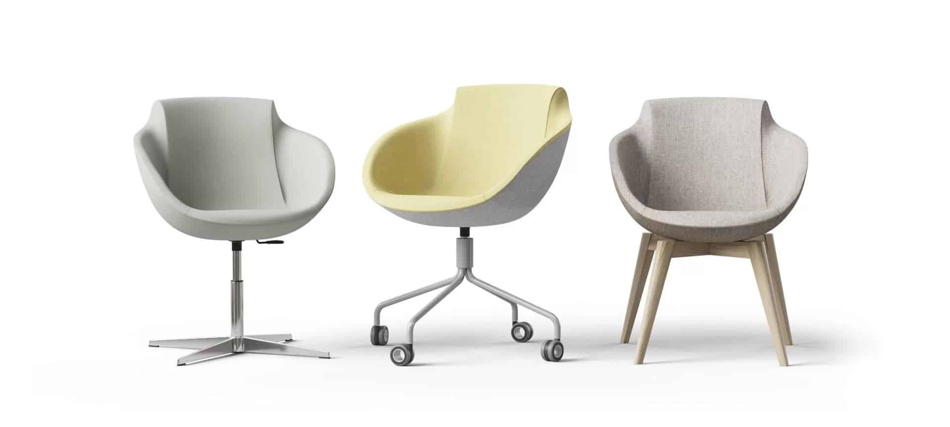 The TULA armchair is suitable for meeting rooms, reception or break-out areas. It can be ordered with a fixed or height-adjustable base. The fixed version can be ordered in aluminium or lacquered natural ash solid wood. The large range of upholstery options ensures that the product can be ordered to meet your office colour schemes.